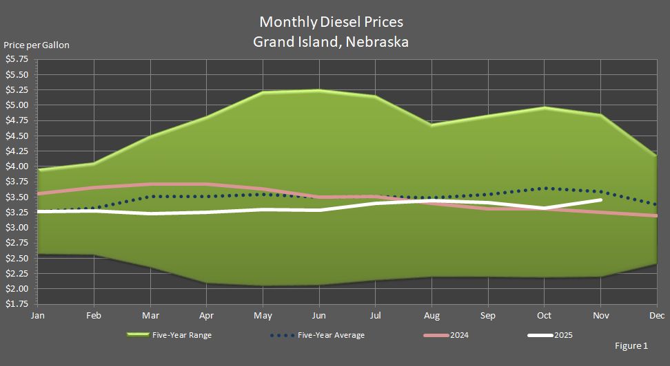 Average Monthly Retail On–Highway Diesel Fuel Prices in Grand Island, Nebraska