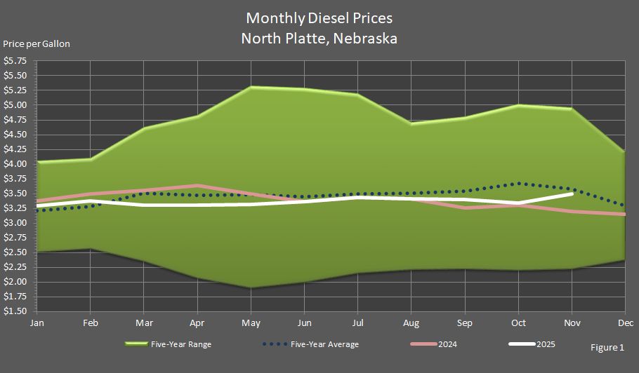 Average Monthly Retail On–Highway Diesel Fuel Prices in North Platte, Nebraska