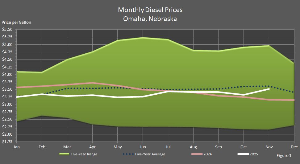 Average Monthly Retail On–Highway Diesel Fuel Prices in Omaha, Nebraska