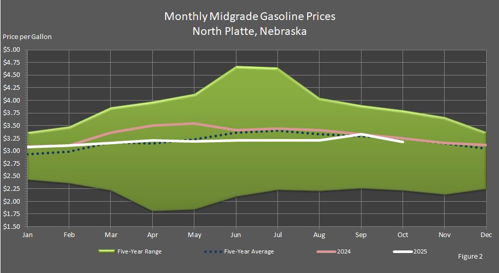 Average Monthly Retail Motor Gasoline Prices in North Platte, Nebraska