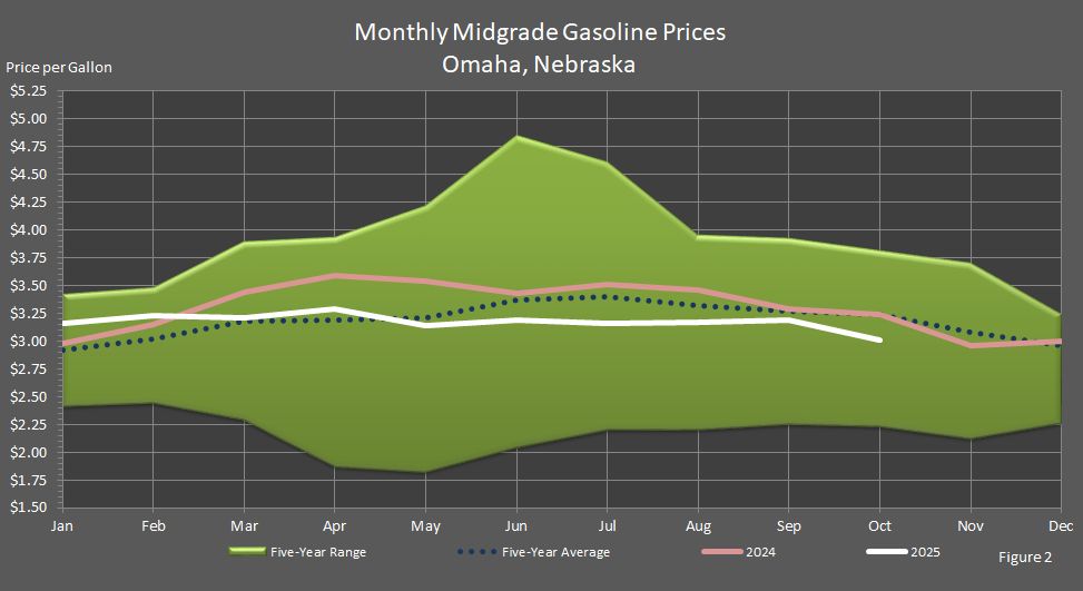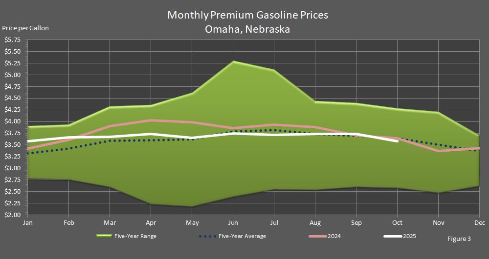 Average Monthly Retail Motor Gasoline Prices in Omaha, Nebraska